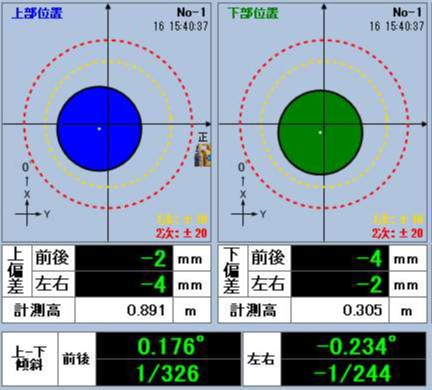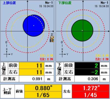 | 上・下部の2点間測定による鉛直度計測。 | |