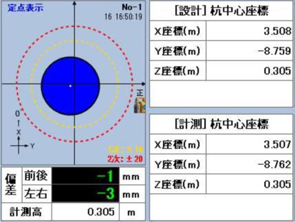 | TSから計測可能状態にある杭を設計杭芯位置へ誘導します。 |