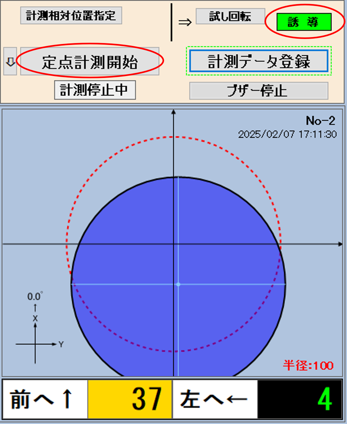 ※あらかじめ杭を設計位置へある程度移動済み (±200mm程度)の状態から計測を行い、 正確に杭中心へ誘導します。 |