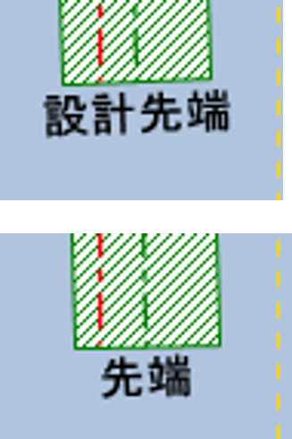 | (1) 上部~設計先端 (設計位置での状態表示) (2) 上部~杭先端 (上部から杭長分を延長した先) |