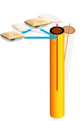2つのアンテナの位置関係より杭芯の位置を計算します。 また傾斜計を使用することで杭の鉛直性を維持する事が可能です。 |
